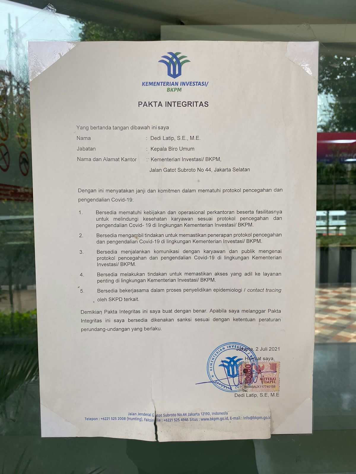 Pakta Integritas Protokol Kesehatan